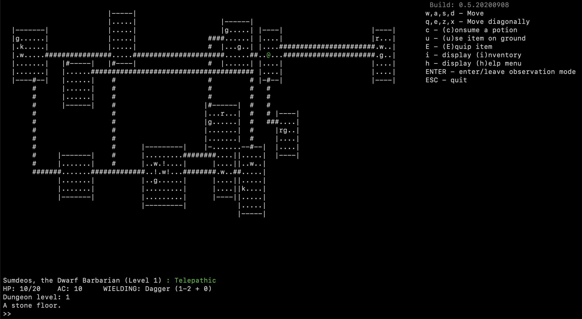 DELVE is a nethack inspired ascii roguelike game. Choose your class and delve deep into the tomb of the necromancer Cem Hial, battling monsters all the way down. Can you defeat Cem Hial and retrieve the famed Night Blade?